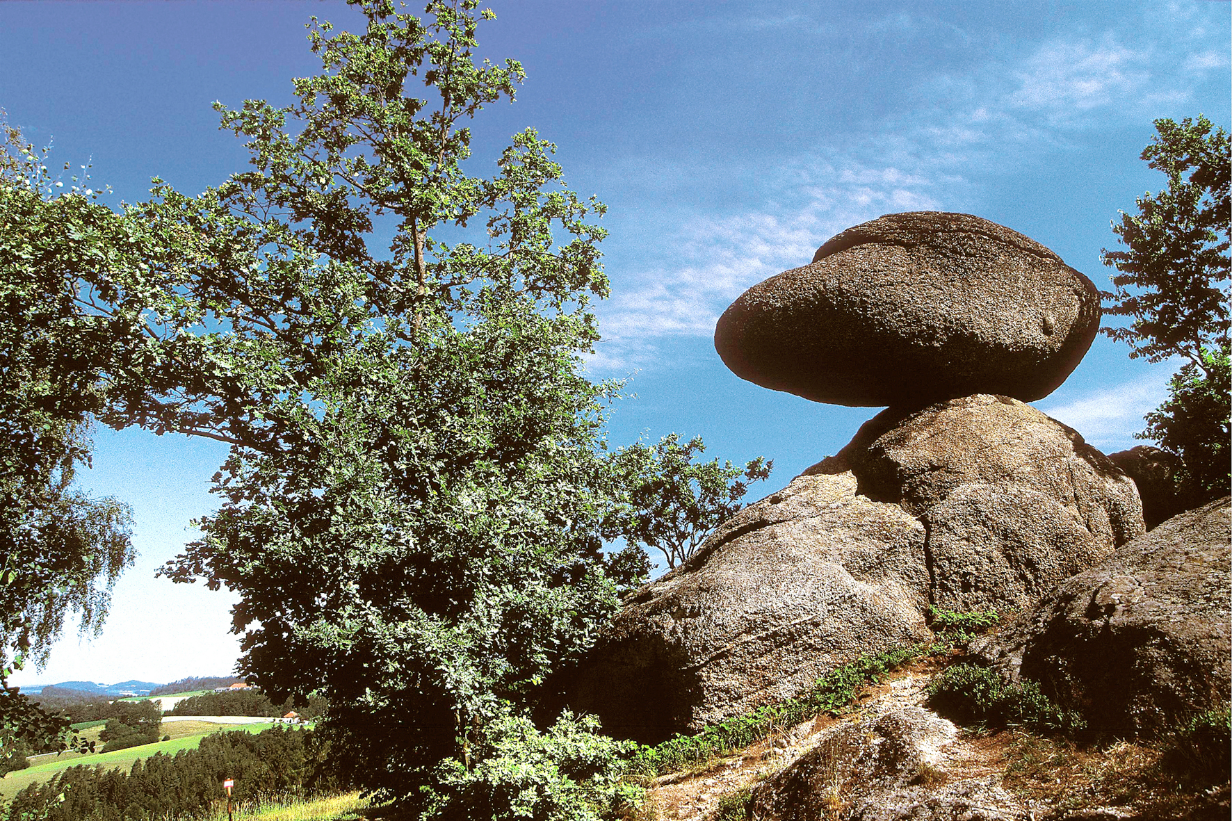Die hügelige, kleinstrukturierte Landschaft mit ihren Granit-Restlingen ist das Markenzeichen dieses Naturparks. Nicht umsonst wurde der imposanteste Wackelstein – der „Schwammerling” – als Logo gewählt. Steinblöcke finden sich hier inmitten bunter Magerwiesen. Steile Schluchtwälder mit Blockburgen begleiten die Flüsse und Bäche. So mancher Pechölstein wird noch zur Herstellung des wertvollen „Heilsams“ genutzt. Alte Handwerkstechniken und die Weitergabe von volksmedizinischem Wissen sind neben der Naturvermittlung wichtige Bestandteile im Bildungsprogramm. Mehr erfahren